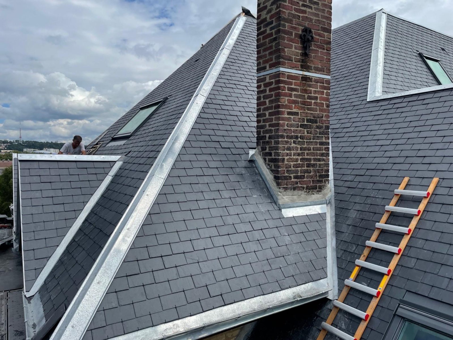 La finalisation de votre couverture comprend la pose des éléments de finition essentiels : faîtage, arêtiers, rives et solins d'étanchéité autour des éléments traversants comme les cheminées ou les fenêtres de toit. Nos artisans installent également les accessoires de sécurité (échelles de toit, garde-corps) et procèdent aux raccordements de zinguerie pour assurer une évacuation optimale des eaux pluviales. Un contrôle qualité rigoureux vérifie l'étanchéité globale, la solidité des fixations et la conformité de l'ensemble aux normes en vigueur. Le chantier se termine par un nettoyage complet des abords et la remise des documents de garantie décennale.