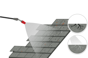 Le nettoyage proprement dit commence par l'élimination manuelle des gros débris et accumulations de mousses, suivi d'un nettoyage haute pression adapté à la fragilité du support. Nos techniciens utilisent des équipements professionnels pour déloger en profondeur toutes les impuretés incrustées sans endommager la structure de votre toiture. Cette étape cruciale permet de retrouver l'aspect d'origine de votre couverture tout en préparant parfaitement le support pour l'application ultérieure du traitement préventif anti-mousse.